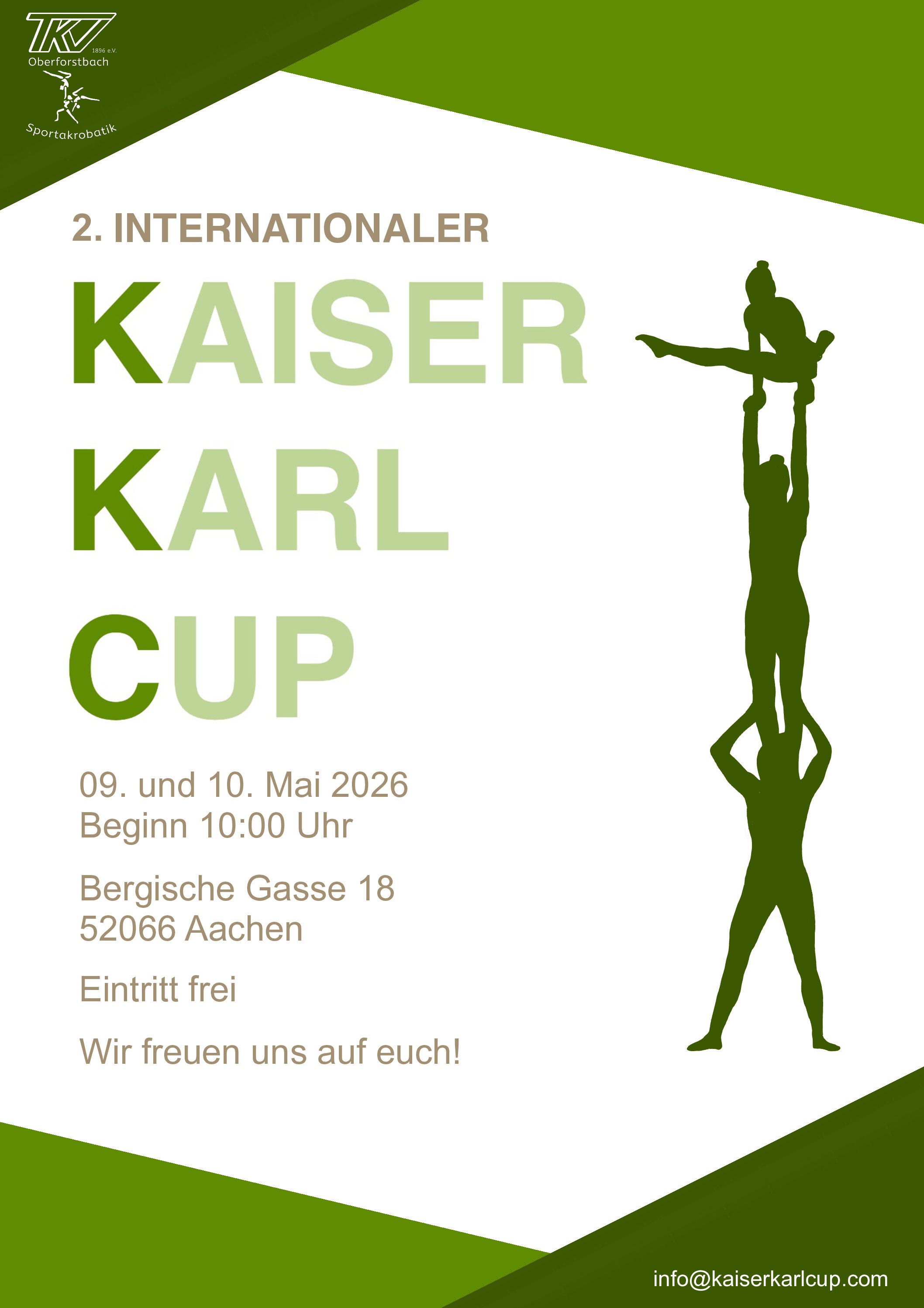 Start Events - Deutscher Sportakrobatikbund Wettkämpfe in Deutschland 2. Internationalen Kaiser-Karl-Cup 2. Internationalen Kaiser-Karl-Cup Announcement KKC Ausschreibung KKC meldebogen_kaiser_karl_cup_2026 Plakat KKC + Zu Google Kalender hinzufügen + iCal / Outlook exportieren 00 Tage 00 Stunden 00 Minuten 00 Sekunden Datum 09. - 10.05.2026 Uhrzeit Ganztags Kategorie Wettkämpfe in Deutschland Nächste Veranstaltung KLG 5 in Dresden Datum 08. - 10.05.2026 Uhrzeit Ganztags Teile diese Veranstaltung