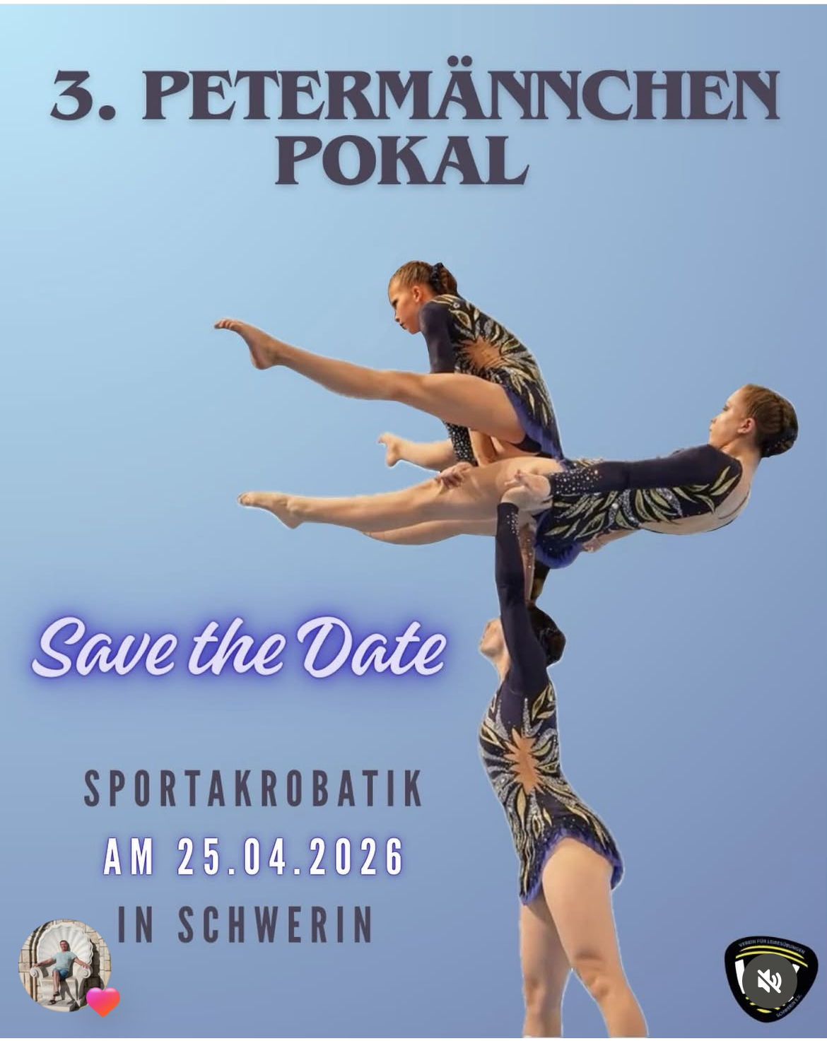 Start Events - Deutscher Sportakrobatikbund Wettkämpfe in Deutschland 3. Petermännchenpokal 2026 in Schwerin 3. Petermännchenpokal 2026 in Schwerin + Zu Google Kalender hinzufügen + iCal / Outlook exportieren 00 Tage 00 Stunden 00 Minuten 00 Sekunden Datum 25.04.2026 Uhrzeit Ganztags Kategorie Wettkämpfe in Deutschland Nächste Veranstaltung 4. Internationaler Augsburger Acro-Cup Datum 01. - 03.05.2026 Uhrzeit Ganztags Teile diese Veranstaltung